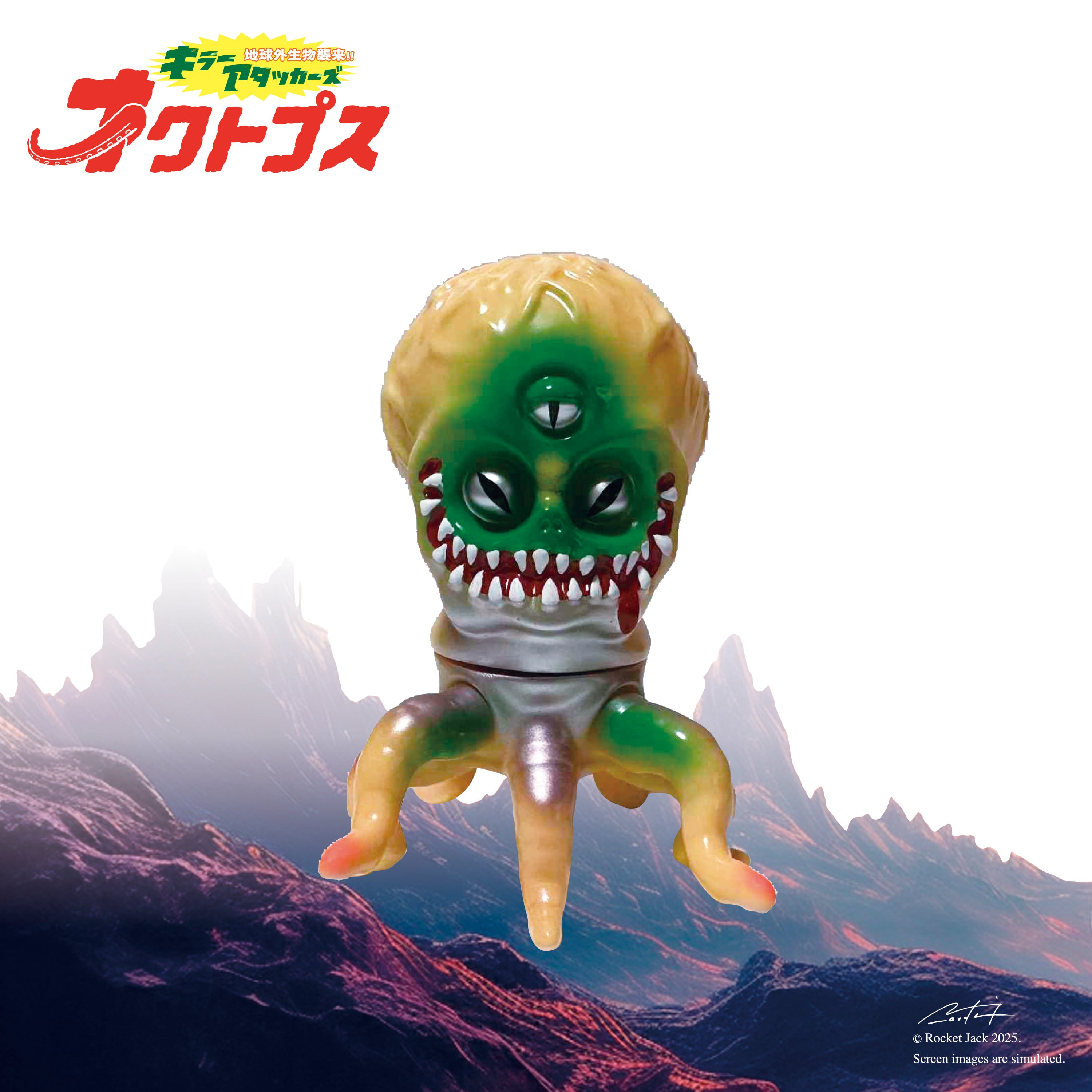 鋭い牙と三つ目が特徴的なオクトプスは、地球を侵略して豊かな資源を人間から奪い取ろうと遥か遠くの星よりやってきたのだ!!